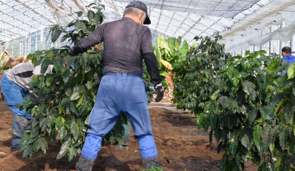 第3ハウスでの地中熱エネルギー利用に伴い機器を設置する場所を確保するため、且つコーヒーの木が成長して密になってきていたため、一部を第1ハウスに移植しました。