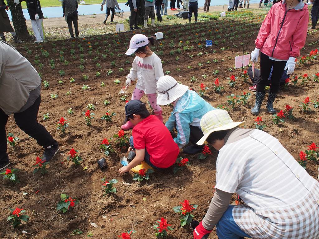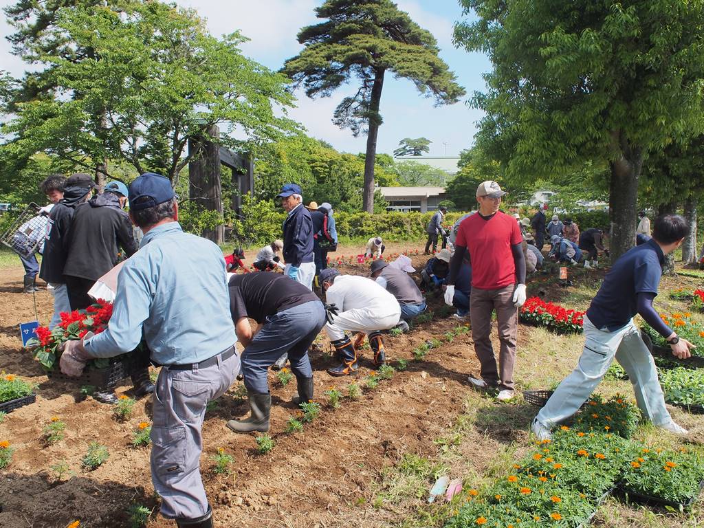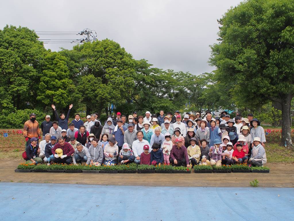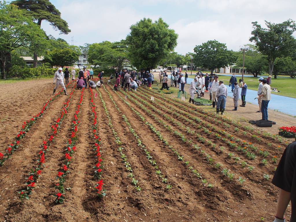 6/1に花いっぱい運動を開催しました [ 二つ沼総合公園 ] 2024年6月1日(土曜日) 6月1日(土)に町民の皆さまのご協力をいただいて、公園内各所に花を植えました。サルビアとマリーゴールドの合計6,300本。 8時30分に遠藤智町長の挨拶で始まり、9時ごろに植え終わりました。大勢集まっていただいたおかげです。ありがとうございました。 花いっぱいで公園が華やかになりました。ぜひお立ち寄りください。