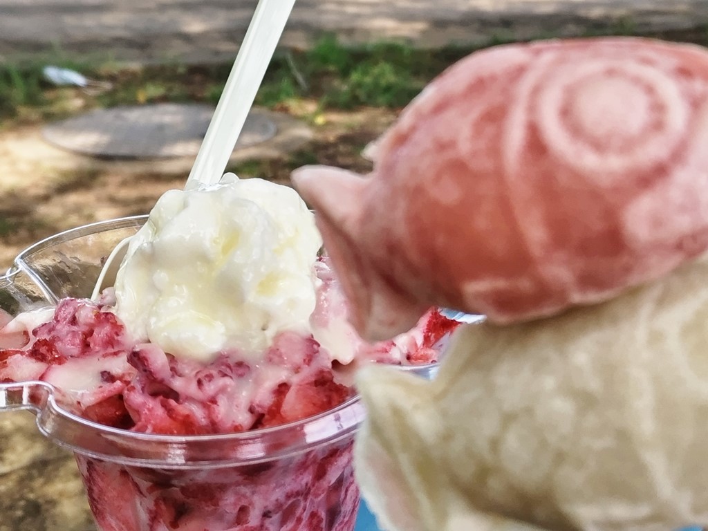 キッチンカーは、たい焼きみたいなメヒカリ君や、けずりいちごのかき氷などが販売されていました。