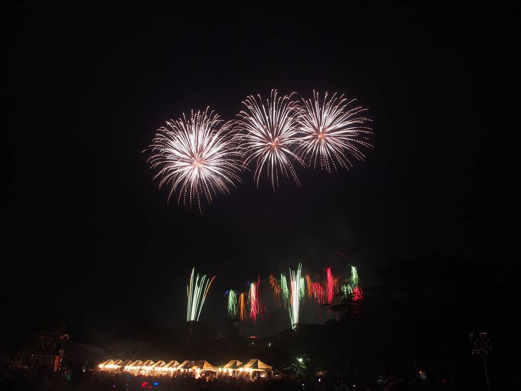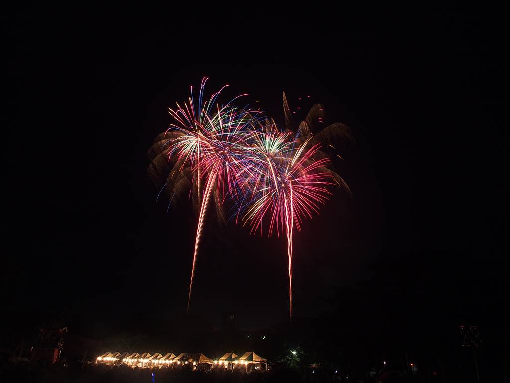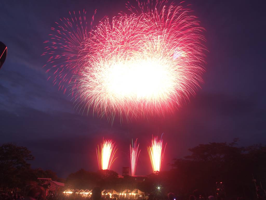 ラストは音楽に合わせた創作花火の打ち上げ。打ち上げ場所が近く、迫力のある大輪の花火が夜空に咲き誇りました。