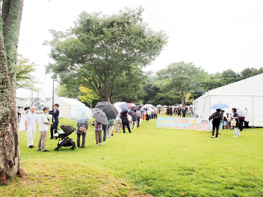 カンニング竹山さんが会場で大鍋を振る舞う「カンニング竹山流カレー鍋」は、整理券を求めて行列ができていました。