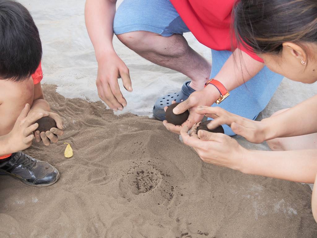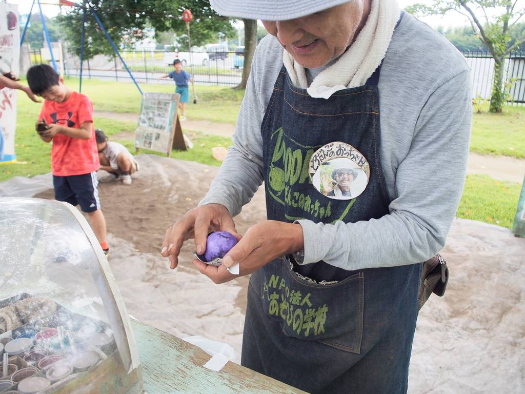 熊本県大津産の黒土から作った「さら砂」を使用し、どろだんごを作ります。
