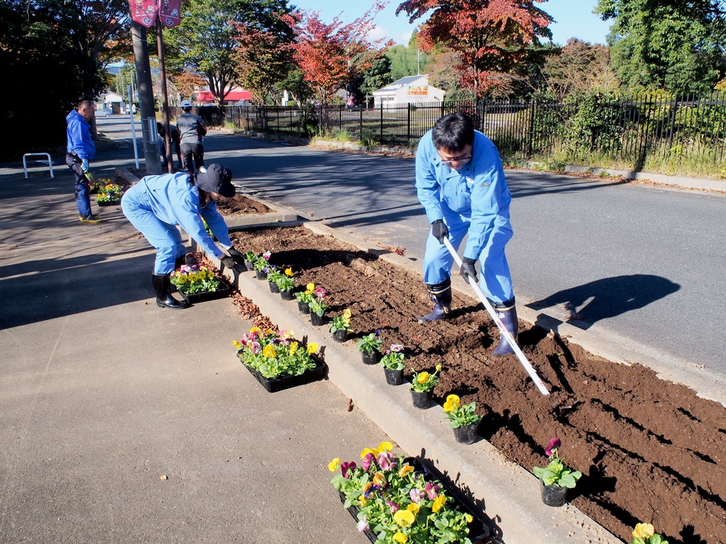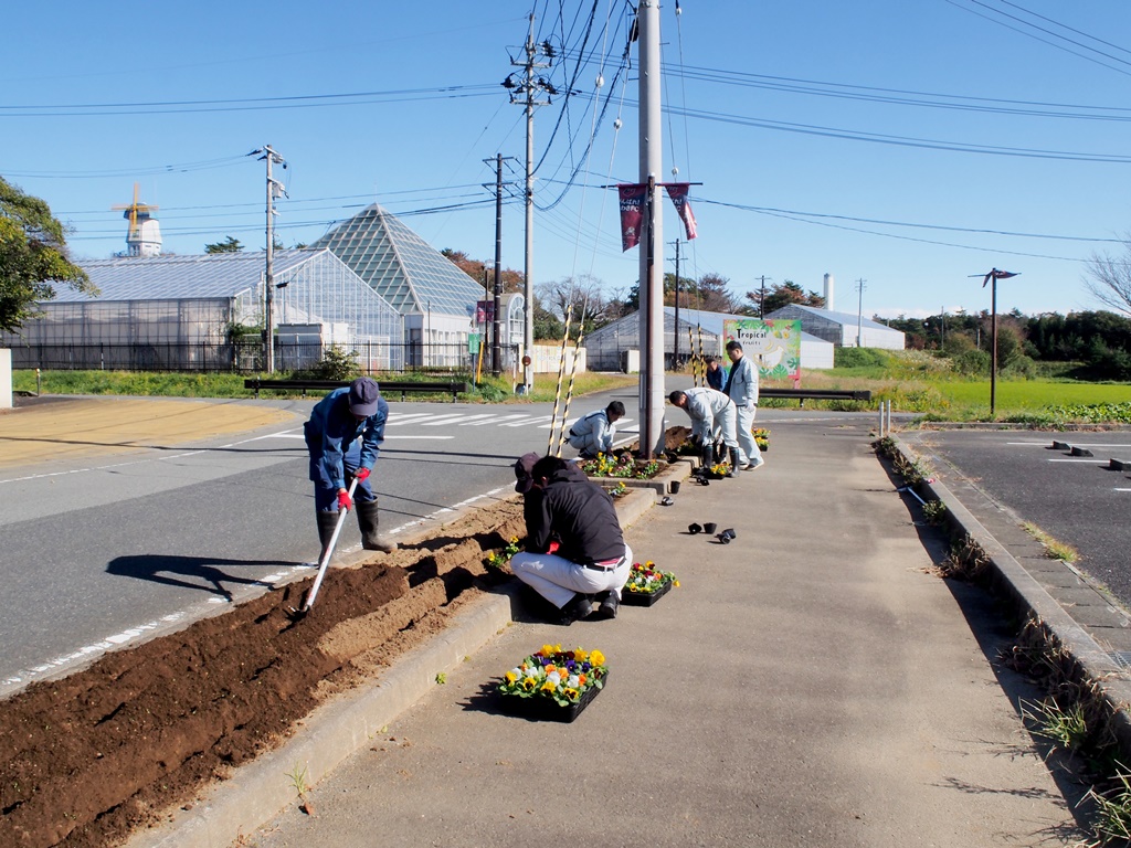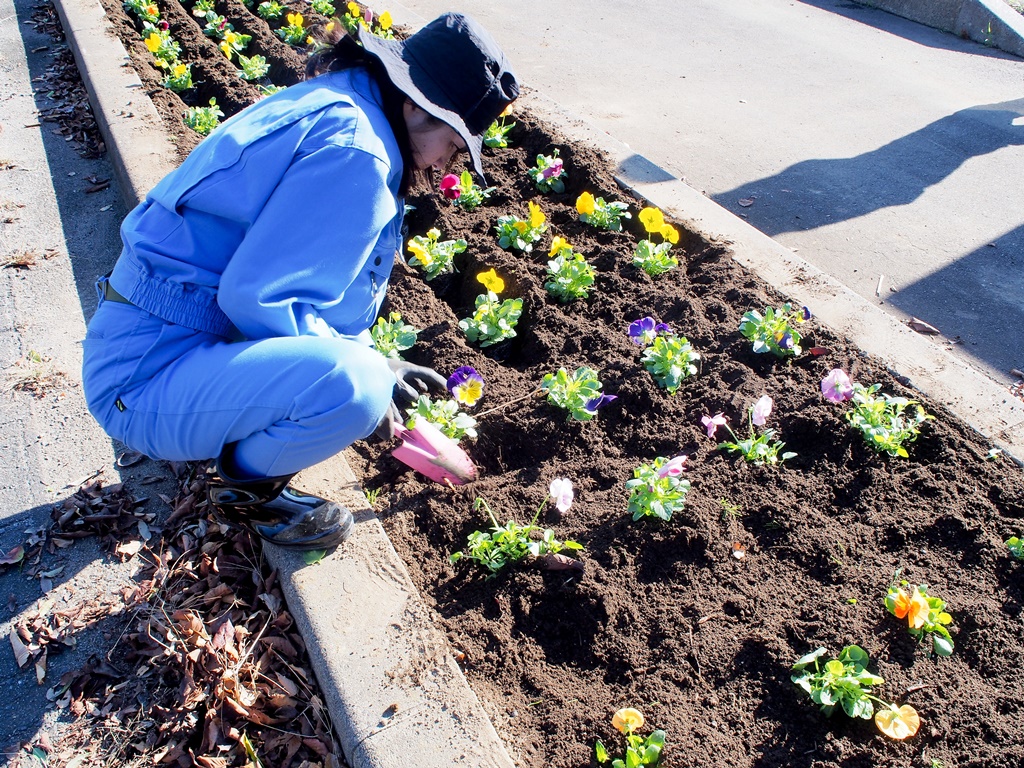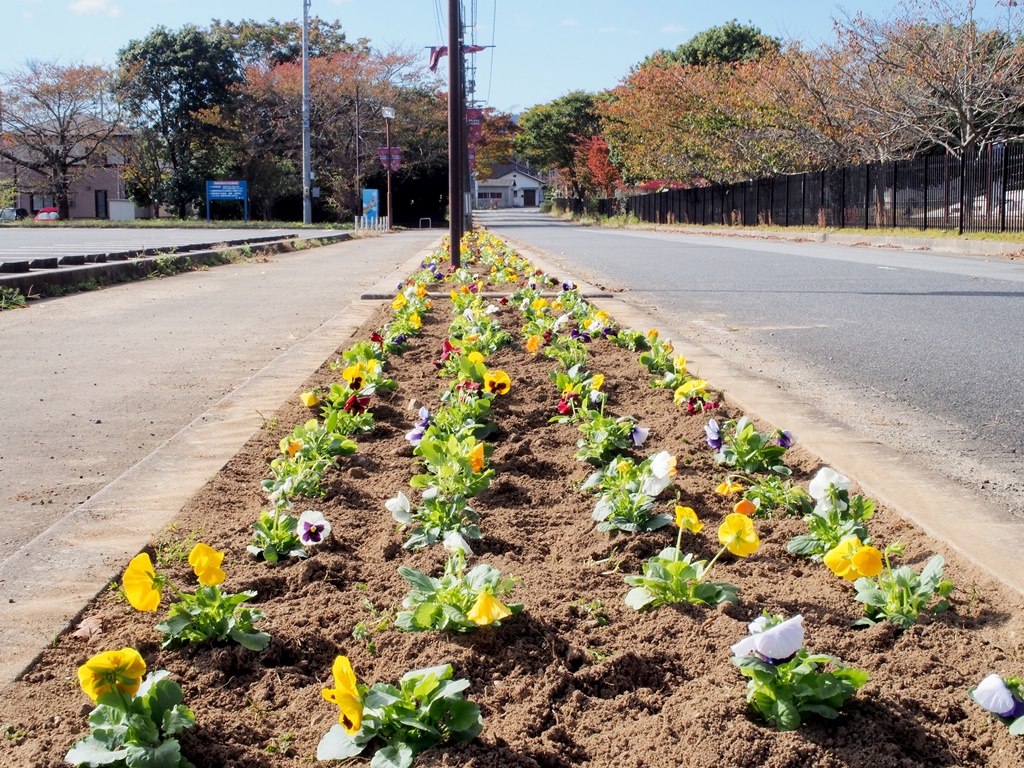 11/8に花いっぱい運動を開催しました [ 二つ沼総合公園 ] 2024年11月8日(金曜日) 11月8日(金)に花いっぱい運動を開催しました。皆さまのご協力をいただいて、パンジー約2,400本を植えました。 南駐車場で植栽に関する説明を行い、南駐車場とパークゴルフ場駐車場に分かれて花植を始めました。畝たてと植え付けを分担して、予定より早く終わることができました。ご協力いただいた皆さまのおかげです。ありがとうございました。 いっぱいの花で華やかになった公園へ、皆さまぜひお立ち寄りください。