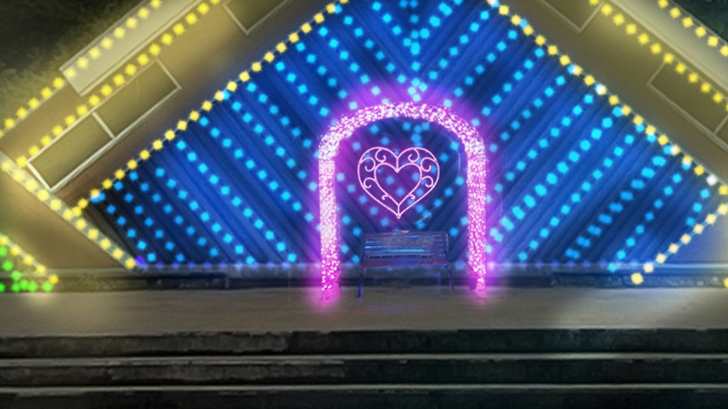 復興の祈り「光」プロジェクトにフォトスポットが設置されます [ 二つ沼総合公園 ] 2024年11月28日(木曜日) 復興の祈り「光」プロジェクトにフォトスポットが設置されます。ハートやアーチのイルミネーションで飾りつけられたフォトジェニックなベンチです。ご家族や大切な人と一緒に記念撮影しませんか。場所は屋内ステージです。今冬の記念にどうぞお越し下さい。 ・復興の祈り「光」プロジェクト 開催期間:令和6年12月8日(日)~令和7年2月14日(金) 点灯時間:17時~22時 ※期間中は正門、南門、南駐車場を開放。 <イメージ画像>