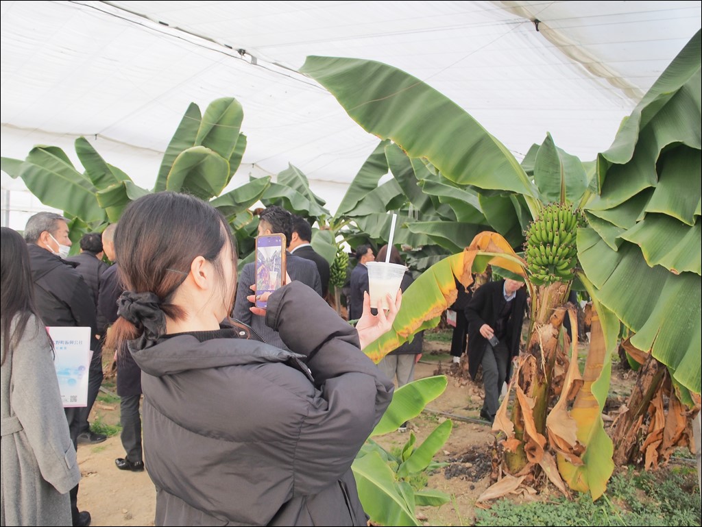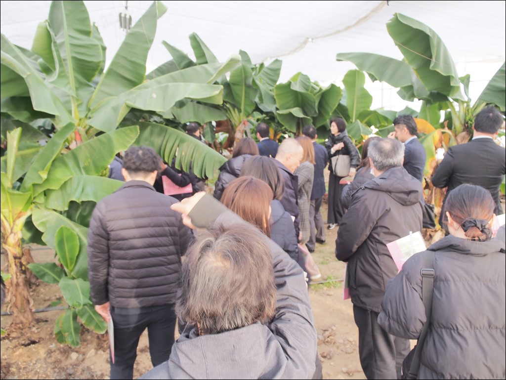 2/18 東京から26名様が視察にいらっしゃいました [ フルーツ栽培 ] 2025年2月18日(火曜日) 令和7年2月18日(火)に東京から26名様が視察にいらっしゃいました。 バナナジュースやバナナシェイクを飲みながら、被災地広野町の新たな創生に向けた取り組みについての説明を聞かれました。その後、ハウスで栽培されているバナナ「綺麗」を見学。写真を撮影されたり、「綺麗」について質問をされたりしました。