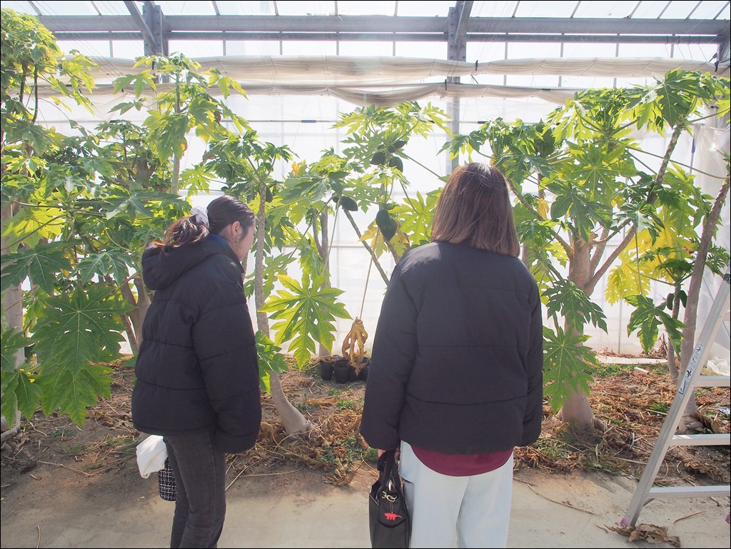 3/1 東亞合成(株)様とワークセンターさくら様の学生インターン生が見学にいらっしゃいました [ フルーツ栽培 ] 2025年3月1日(土曜日) 令和7年3月1日(土)に東亞合成(株)様とワークセンターさくら様の学生インターン生2名が見学にいらっしゃいました。 トロピカルフルーツミュージアムで追熟設備を見学された後、ハウスでバナナ「綺麗」やパパイヤをご覧になられました。バナナハートが成長して、中から出来てきたバナナとその先端の花を観賞されました。企業が抱える課題の解決については、動き始めている段階だそうです。 広野町に滞在している間に、パークゴルフもぜひ体験していただきたいです。