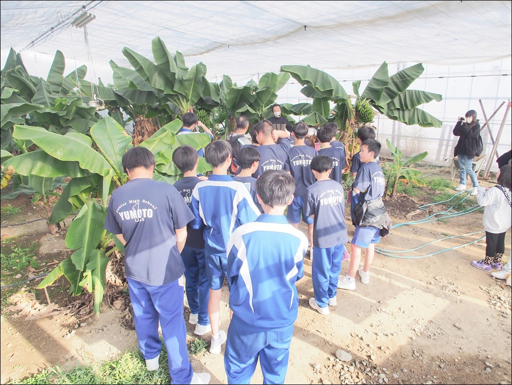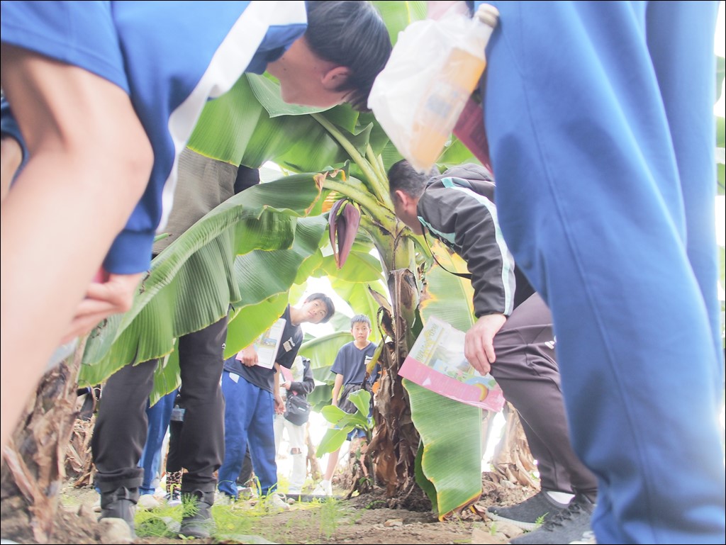 質問の後は、実が付き始めたばかりのバナナ「綺麗」を順番に観賞。