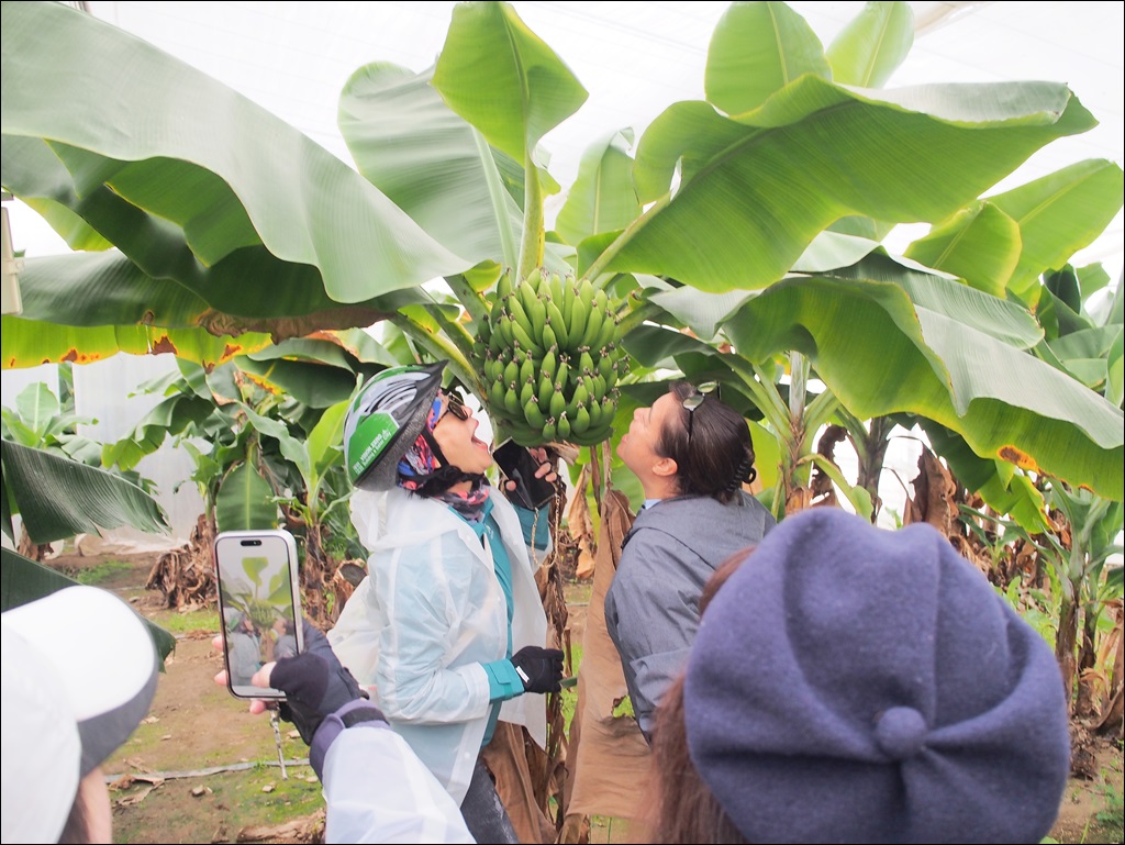 4/13 3480自行車隊様が見学にいらっしゃいました [ フルーツ栽培 ] 2025年4月13日(日曜日) 令和7年4月13日(日)に3480自行車隊様が見学にいらっしゃいました。 トロピカルフルーツミュージアム到着後、バナナジュースとバナナウェイクを注文。ジュースやシェイクを飲みながらハウスを見学されました。台湾からのお客さまということもあり、バナナに詳しい方がいらっしゃって、台湾の言葉でバナナの説明をしてくれました 見学が終わった後は自転車に乗って次の目的地へ向かわれました。