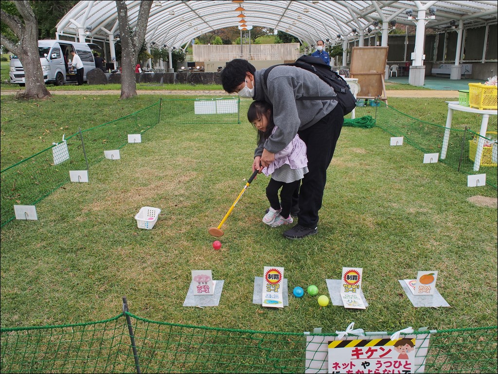 弊社からは芝生広場で的当てパークゴルフ体験、交通教室広場でバッテリーカーの乗車を行います。