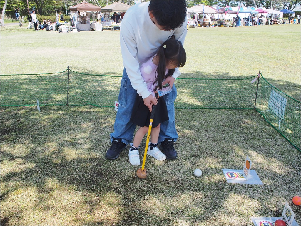 パークゴルフ体験は定員の80名の方に体験していただきました。景品のアルパカのおやつで、ココアにおやつをあげる体験も楽しんでいただけました。