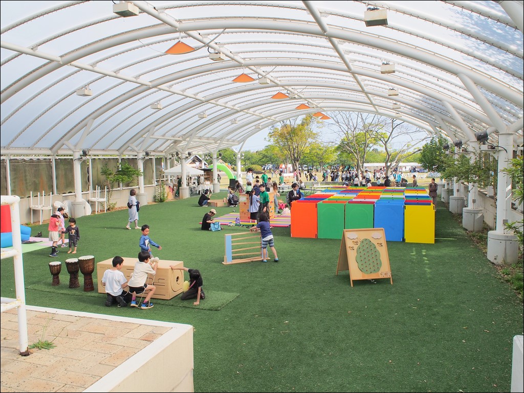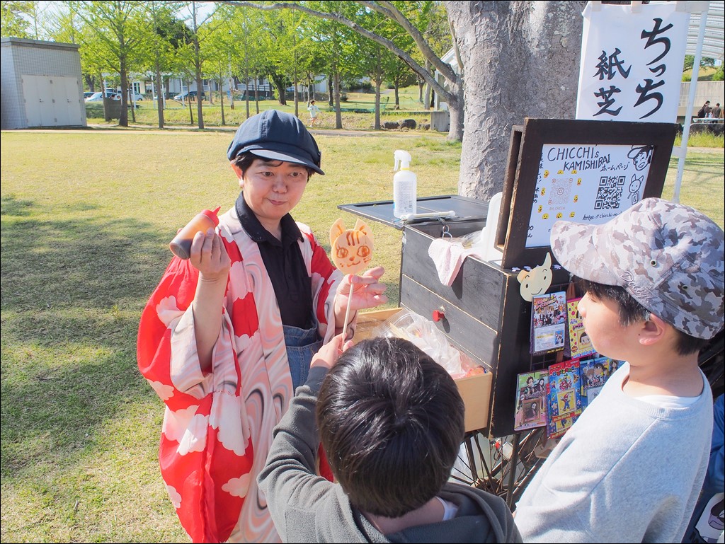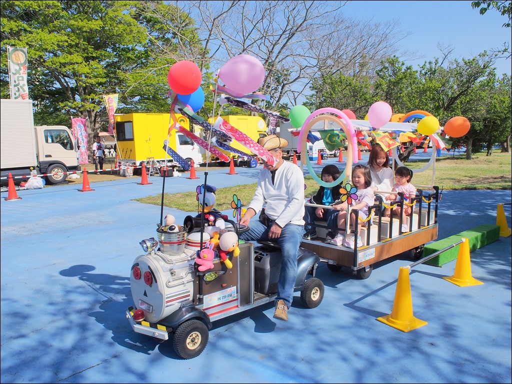 ステージでは「パッションキッズ」さんのダンス、「カラオケ大会」、「大声大会」さんの音楽ライブ、「紙芝居師ちっち」さんの紙芝居がありました。芝生広場では、フリーマーケットの開催、キッチンカーや広野町商工会の出店があり、ふれあいドームでは「木練がっこう」さんの催しが行われていて、会場は賑わいをみせていました。今回はバッテリーカーだけでなくミニ電車も運行していて、楽しめる乗り物が充実していました。