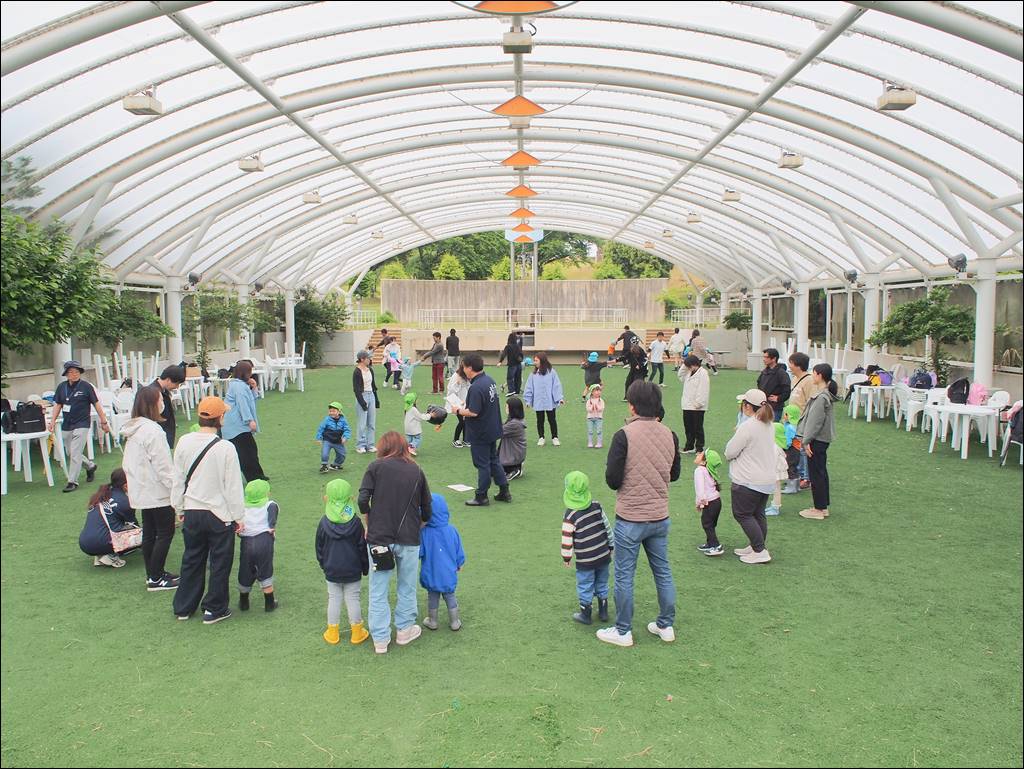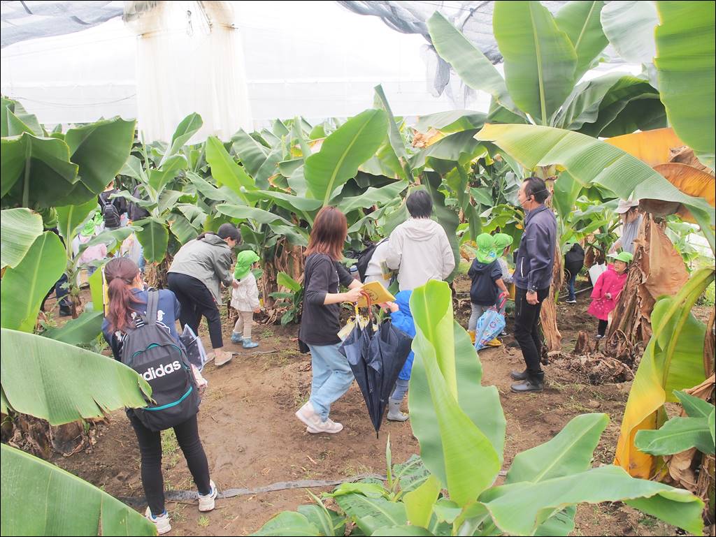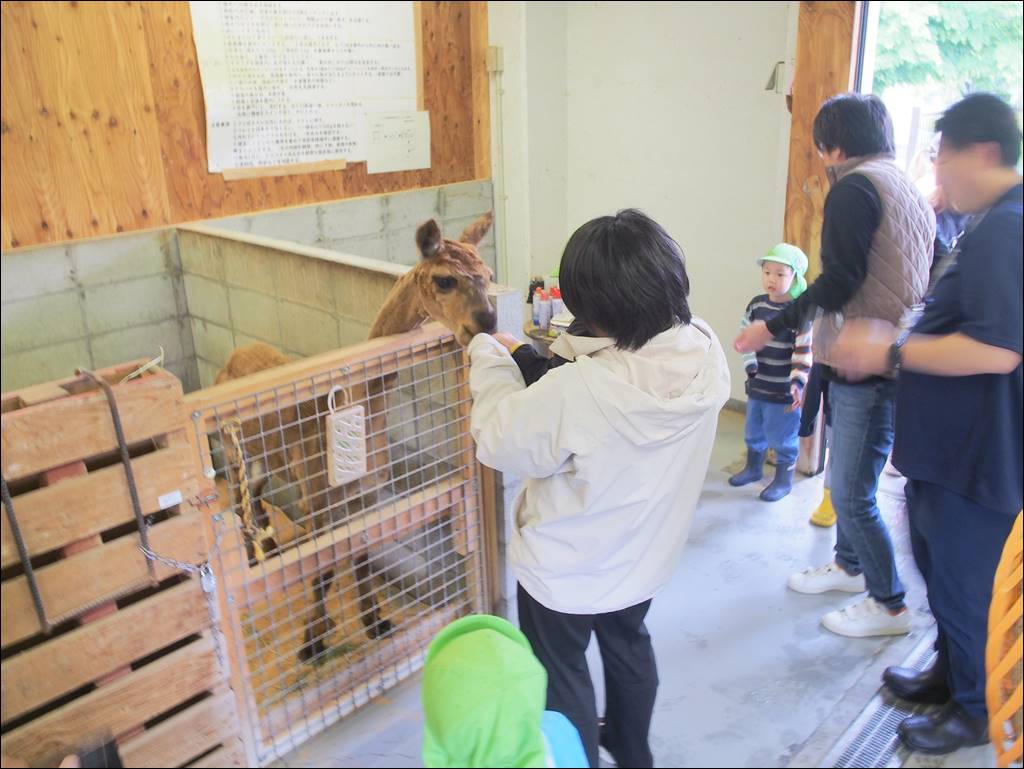 園内の見学は3組に分かれて行われました。あいにくの天気のため一部予定を変更し、ふれあいドームでお遊戯などをされました。その他、予定どおりハウスで「綺麗」を見学したり、アルパカのココアの見学などをされました。次はぜひ天気のよい日にお越しください。