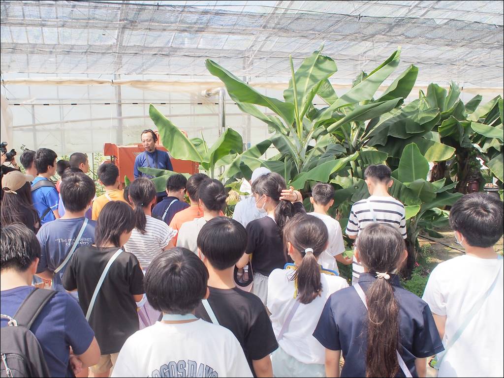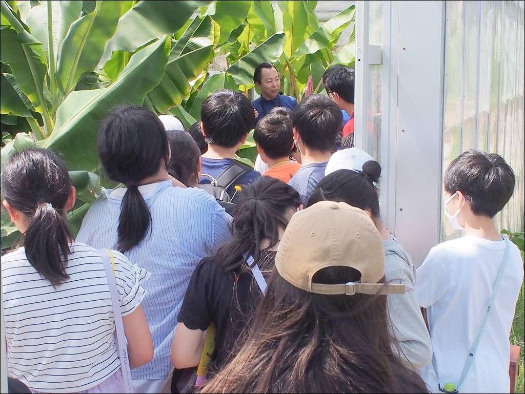 6/20 開智望学園中等部様がフィールドワークでいらっしゃいました [ フルーツ栽培 ] 2025年6月20日(金曜日) 令和7年6月20日(金)に開智望学園中等部様がフィールドワークでいらっしゃいました。 被災地広野町の新たな創生に向けた取り組みを聞かれた後、ハウスでアケビバナナや「綺麗」を見学。バナナの葉っぱは何枚できるか、といったクイズに挑戦などされました。 お越しいただきありがとうございました。またのご来園をお待ちしております。