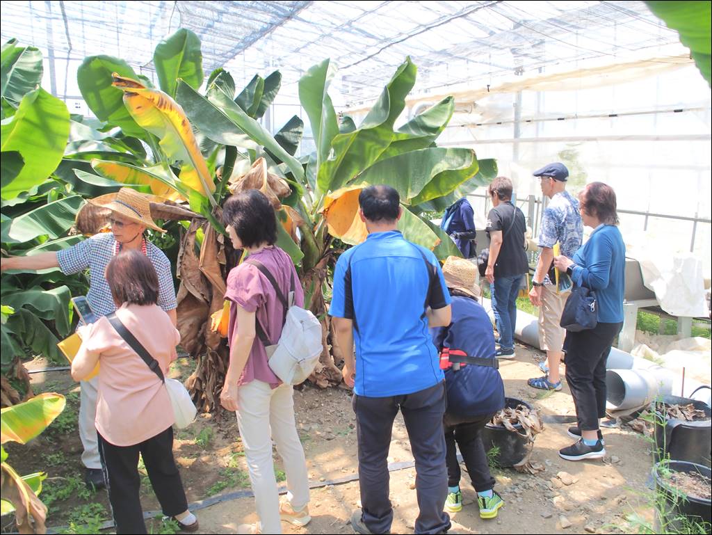 7/26 一般社団法人ちろる様が見学にいらっしゃいました [ フルーツ栽培 ] 2025年7月26日(土曜日) 一般社団法人ちろる様が見学にいらっしゃいました。 バナナ「綺麗」の購入やひろぼーの休憩所でバナナジュースなどを注文された後、バナナジュースを飲みながら被災地広野町の新たな創生に向けた取り組みを聞かれました。次に、バナナ「綺麗」を栽培しているハウスへ移動。気温が高く、ハウスの中は外よりも暑くなっているため、生っているバナナの実を順番に観賞されてバスへお戻りになられました。 お暑い中、お越しいただきありがとうございました。ぜひまたお越しください。