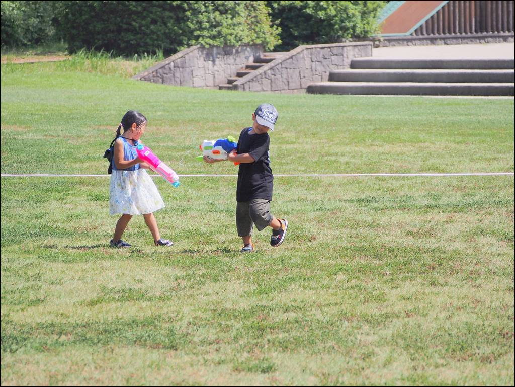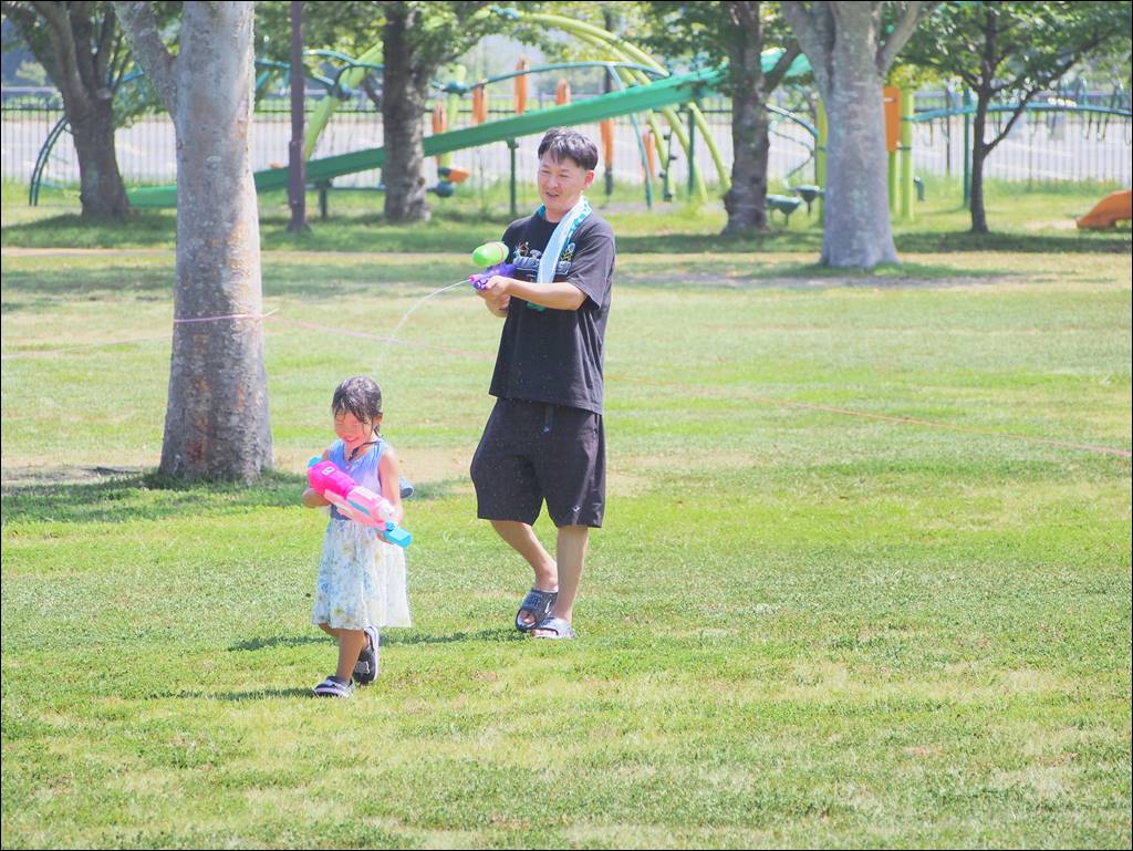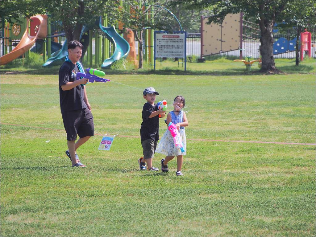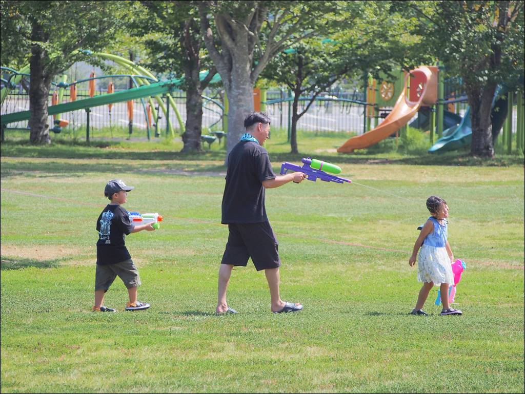 8/23 水鉄砲スプラッシュパークを開催しました。 [ 二つ沼総合公園 ] 2025年8月23日(土曜日) 令和7年8月23日(土)に水鉄砲スプラッシュパークを開催しました。 お暑い中、参加していただいた皆様ありがとうございました。全力で走り回り、水をかけあって、夏ならではの遊びを楽しんでいただきました。ぜひ次回もお越しください。 次回開催は8月30日(土)午後1時~3時30分です。無料です。皆様のお越しをお待ちしております。