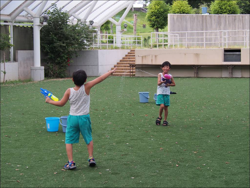 8/30 水鉄砲スプラッシュパークを開催しました。 [ 二つ沼総合公園 ] 2025年8月30日(土曜日) 令和7年8月30日(土)に水鉄砲スプラッシュパークを開催しました。 お暑い中、参加していただいた皆様ありがとうございました。全力で走り回り、水をかけあって、夏ならではの楽しさを一緒に味わえました。これまでにご参加いただいた皆さま、本当にありがとうございました。
