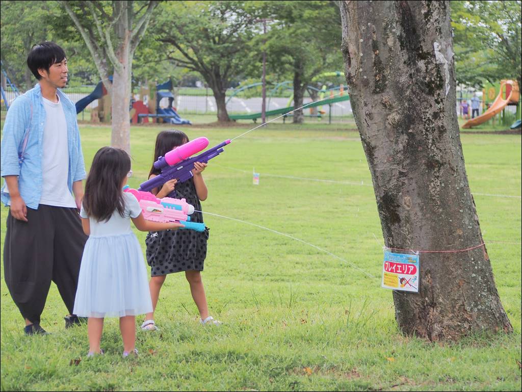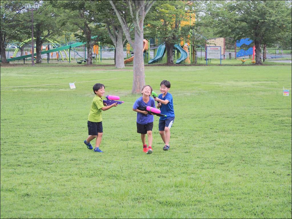 9/13 水鉄砲スプラッシュパークを開催しました。 [ 二つ沼総合公園 ] 2025年9月13日(土曜日) 9月13日に水鉄砲スプラッシュパークを開催しました。 あいにくの曇り空でしたが、25名様にご参加いただきました。水鉄砲を楽しむ声で公園はとても賑やかになりました。これで今年の開催は終わりです。ご参加いただいた皆さまありがとうございました!