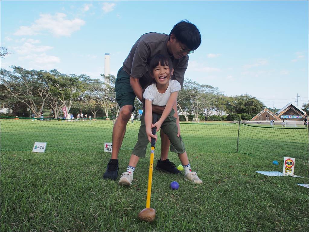 会場は南駐車場と芝生広場の2ヶ所で、南駐車場ではFMX(フリースタイルモトクロス)。芝生広場ではサッカーやボルダリング、パークゴルフ、サバイバルゲーム、eスポーツなどのスポーツ体験。更に移動動物園やフリーマーケット、移動販売車の出店がありました。