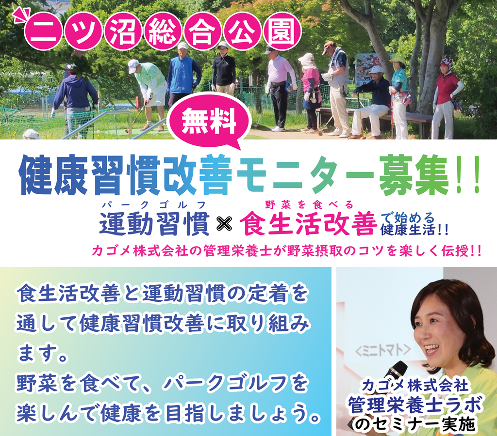 ・ナトカリ測定は 11月8日(土) と 12月20日(土) に実施します。両日ともご参加ください。各測定日の 当日の朝に採尿 し、ナトカリ測定容器をパークゴルフ場受付までご持参ください。