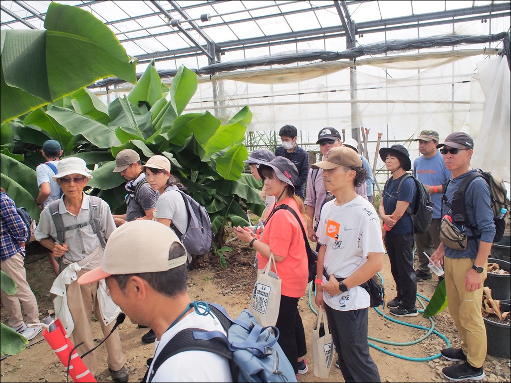 10/5 ふくしま浜街道トレイルウォーク様が見学にいらっしゃいました [ フルーツ栽培 ] 2025年10月5日(日曜日) 令和7年10月5日(日)にふくしま浜街道トレイルウォークの皆さまが立ち寄ってくださいました。 広野駅から広野海岸の堤防を歩いてトロピカルフルーツミュージアムへお越しになりました。冷房の効いた部屋で休憩をとり、それぞれバナナジュースやシェイクを購入された後、ハウスで「綺麗」を見学されました。なぜバナナの実が曲がるのか、葉っぱの枚数は何枚かなどのクイズに挑戦されました。 見学の後は楢葉方面へとご出発。暑い中でのご来園、本当にありがとうございました。またのお越しをお待ちしております。