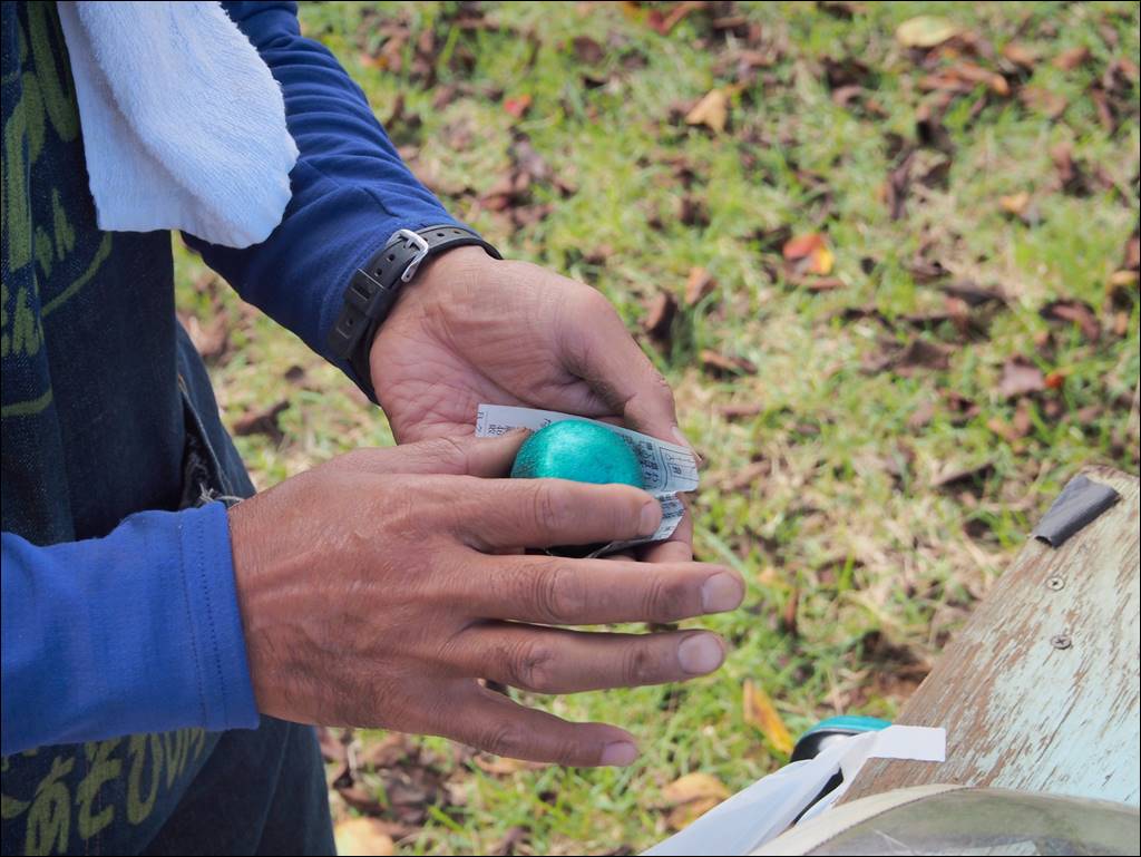 出来たどろだんごを「どろだんごのおっちゃん」が鑑定し、きれいな丸で傷が少ないものほど高いランクになります。