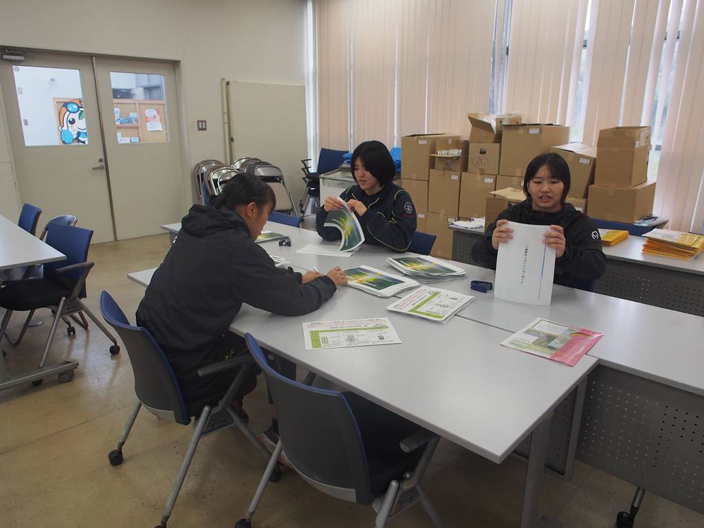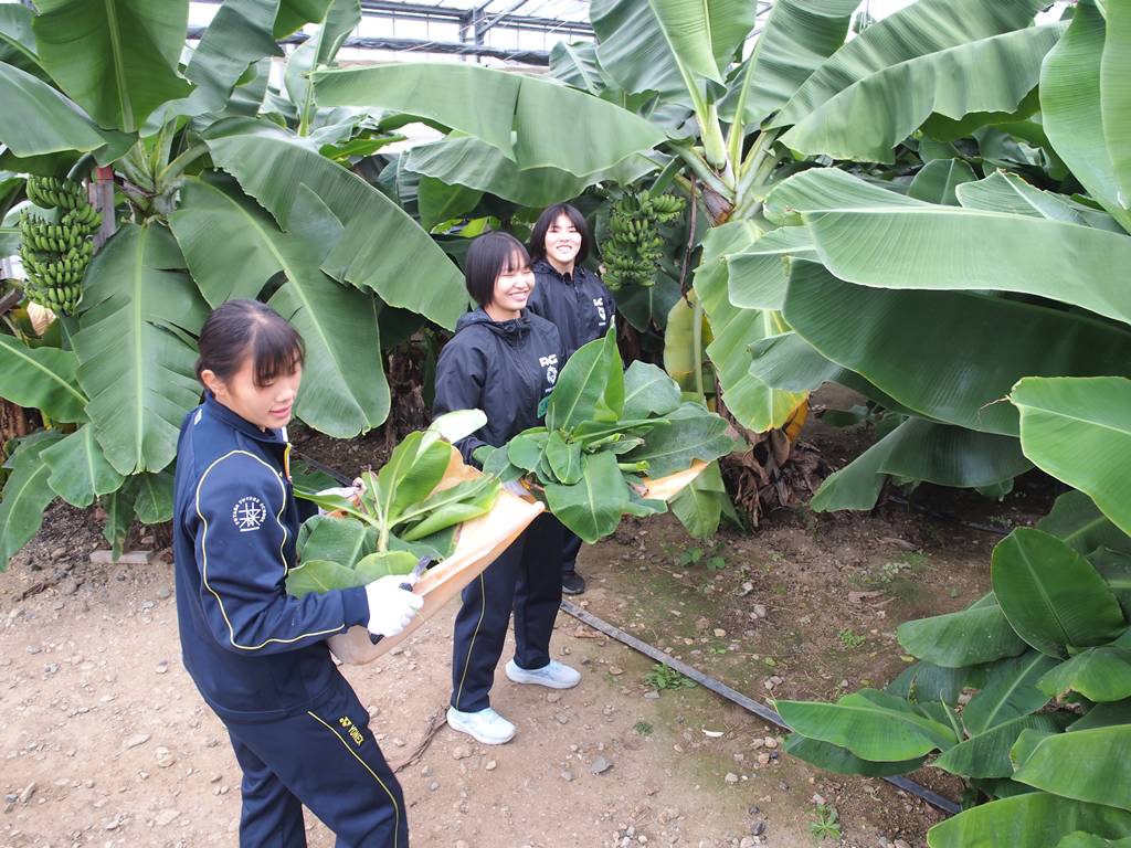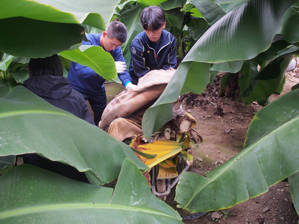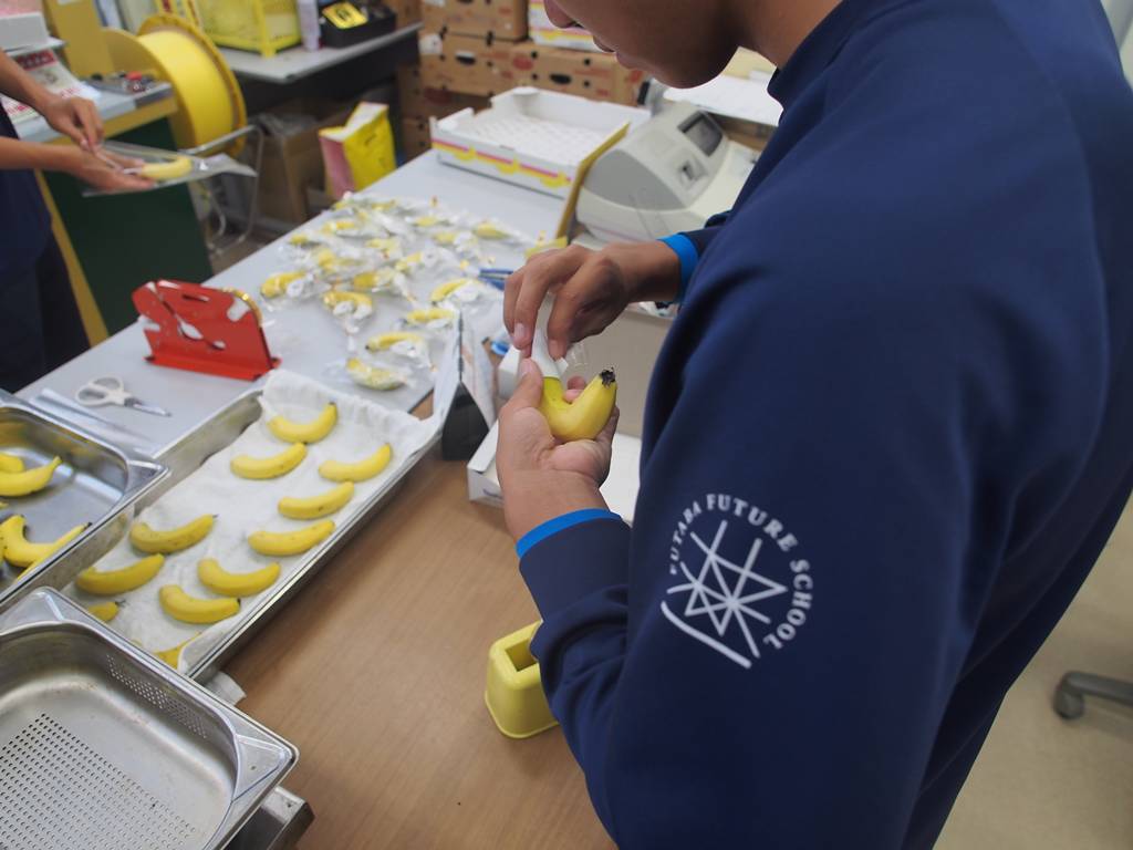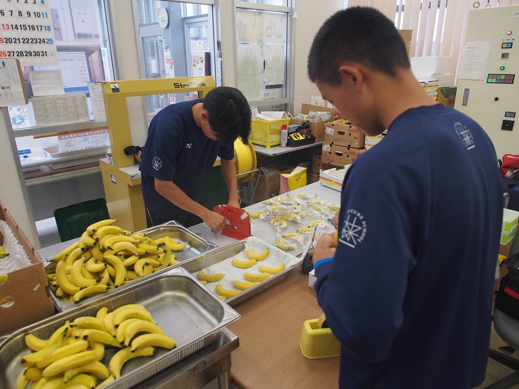 午前中は、バナナの袋詰めや、昨日と同様に視察などで配布する資料の準備、たまたまご来園されていた団体のお客様へのバナナジュース提供の対応も手伝っていただきました。