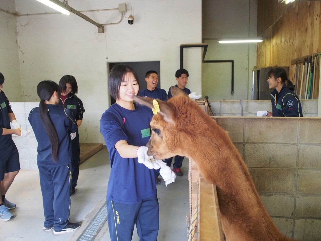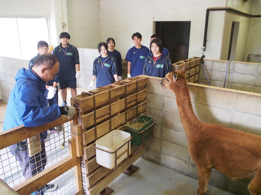 始めに企業説明を受けた後、公園内の施設の見学やアルパカのエサやり体験をされました。休憩を挟んで午後からは草刈りをした草を集めたり、視察などで配布する資料の準備をしてくれました。みなさん真面目に一生懸命取り組んでくださいました。