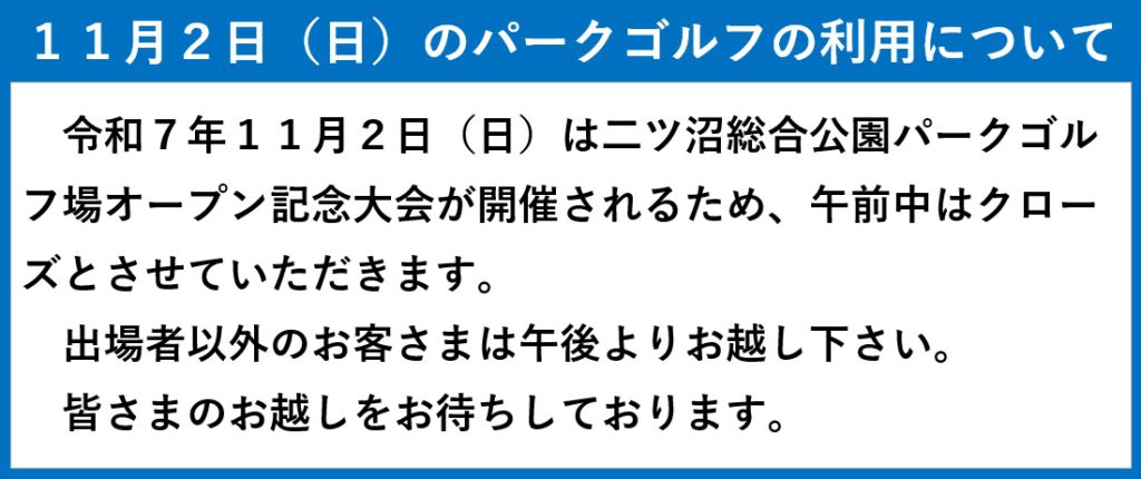 )の午前中は出場者以外のお客さまはパークゴルフをご利用できませんのでご注意ください。