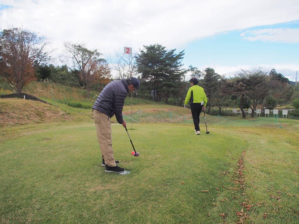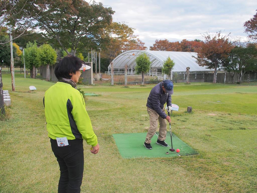 ルール説明の後、みかんコースとやまゆりコースでサポートいたしました。グランドゴルフの経験者で、初めてながらもバーディをいくつもとる腕前で、2コースを最後までスムーズにプレーされました。