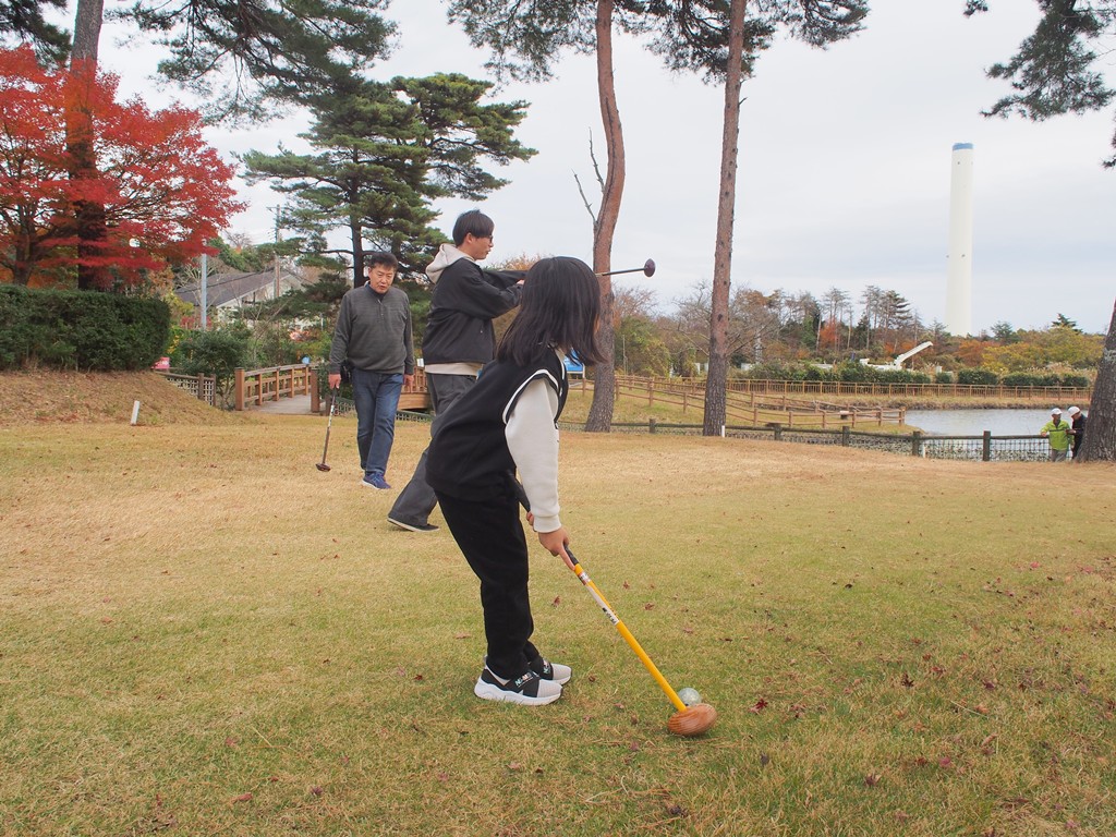 令和7年11月23日のパークゴルフ初心者教室は、3世代のご家族3名様が参加されました。