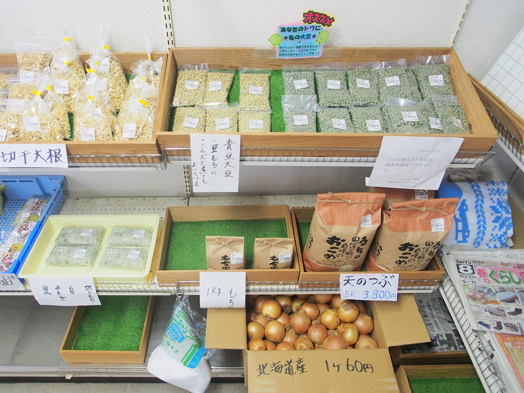 小名浜海星高校様の「わたあめ」やワークセンターさくら様の「こんにゃく」、小林とうふ直売所様の「豆腐」などもあります。更に国産はちみつや梅干しの販売もございます。ぜひお立ち寄りください。