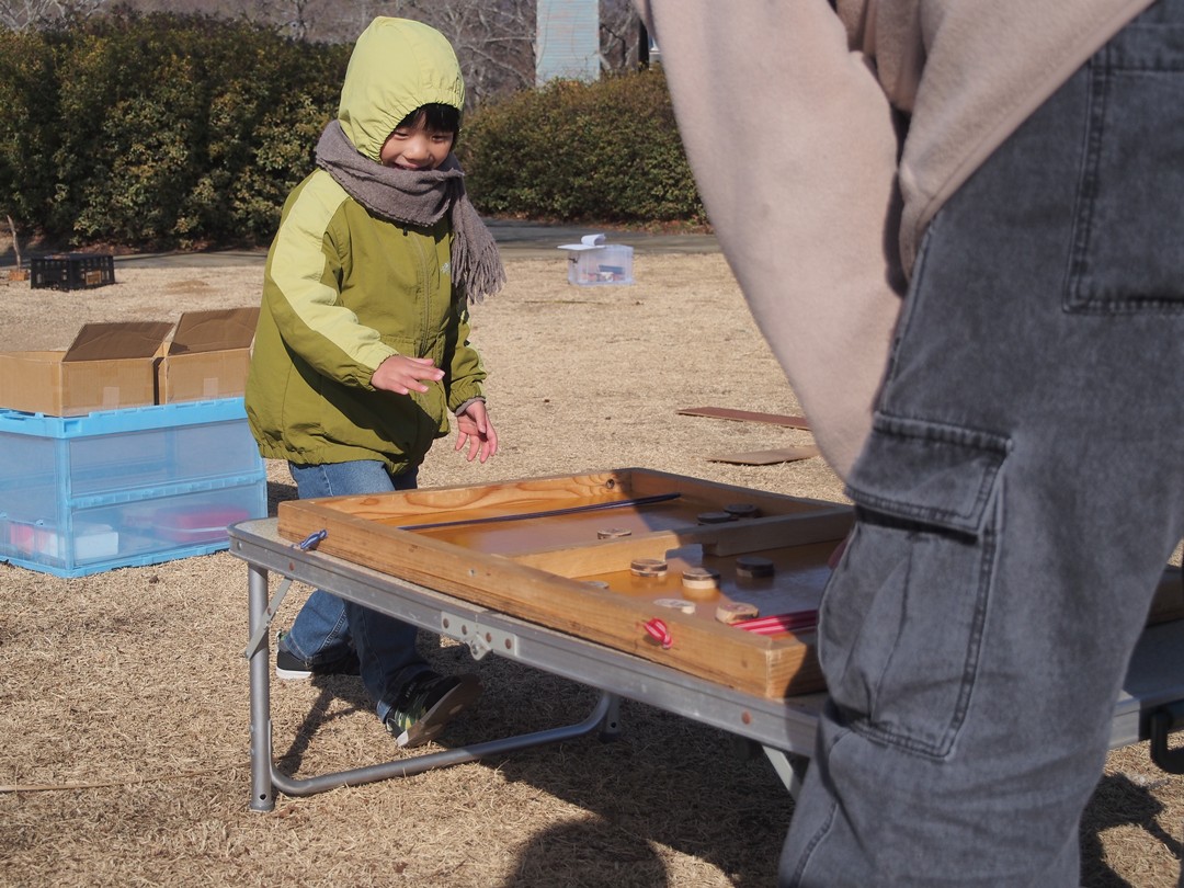 日差しはあったものの冷たい風も吹いていて、日中は園内で遊ぶ方も少なめでしたが、プレイパークの時間になると親子連れの皆さまが集まり、会場は次第ににぎやかな雰囲気となりました。