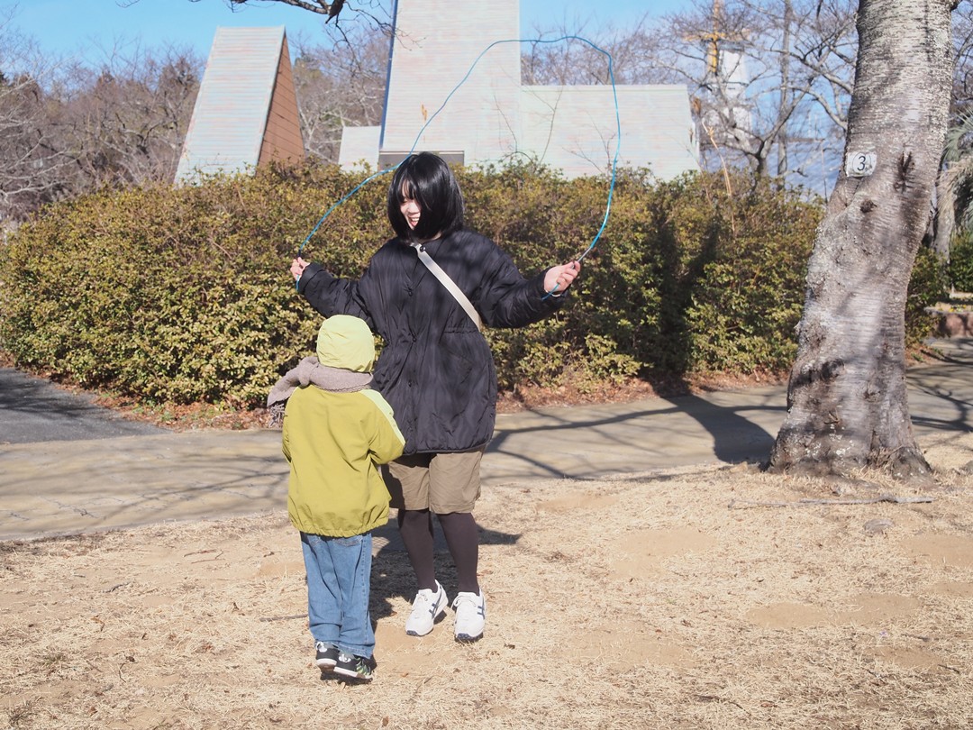 手作りの輪投げやマグネット釣りを楽しんだり、1本の縄跳びで親子一緒に飛んだりと、協力しながら体を動かす姿などが見られました。
