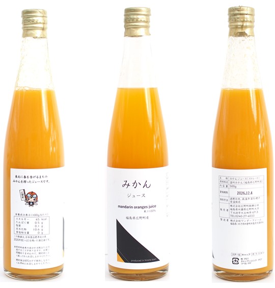 広野町産みかん(温州みかん)果汁100%のジュースです。甘さと酸味が程よいバランスで、濃厚なみかんの味でありながら飲みやすい仕上がりとなっています。