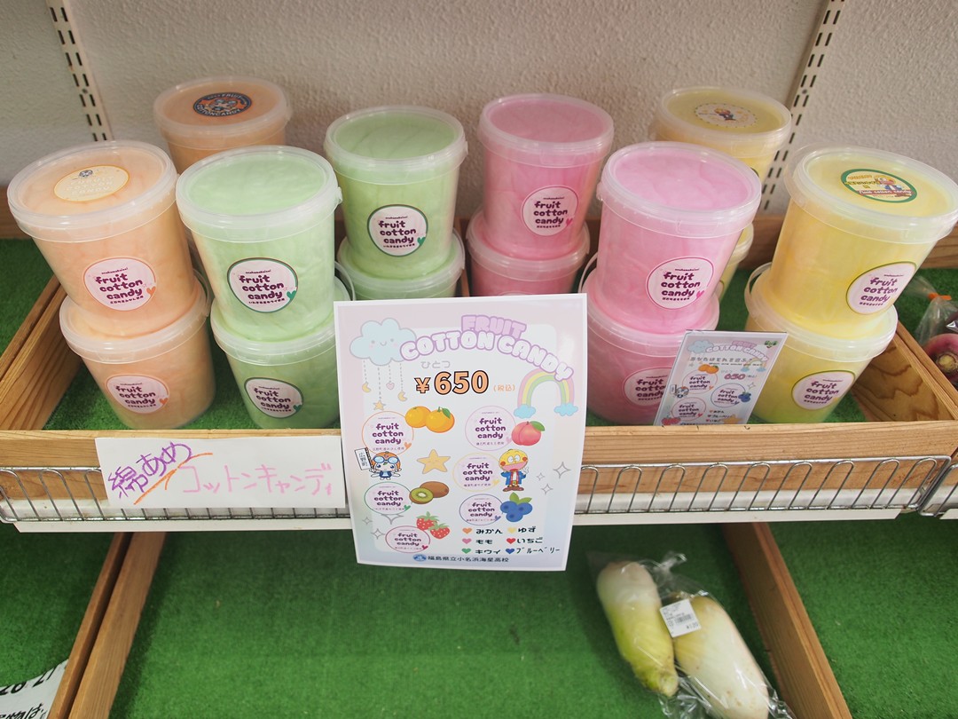 広野町産みかんジュース、小名浜海星高校さんの「わたあめ」、ワークセンターさくらさんの「こんにゃく」、小林とうふ直売所さんの「豆腐」などもあります♪