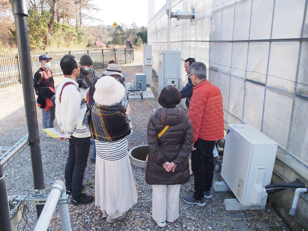 続いてハウスへ移動の途中で地中熱システムの説明を受けました。