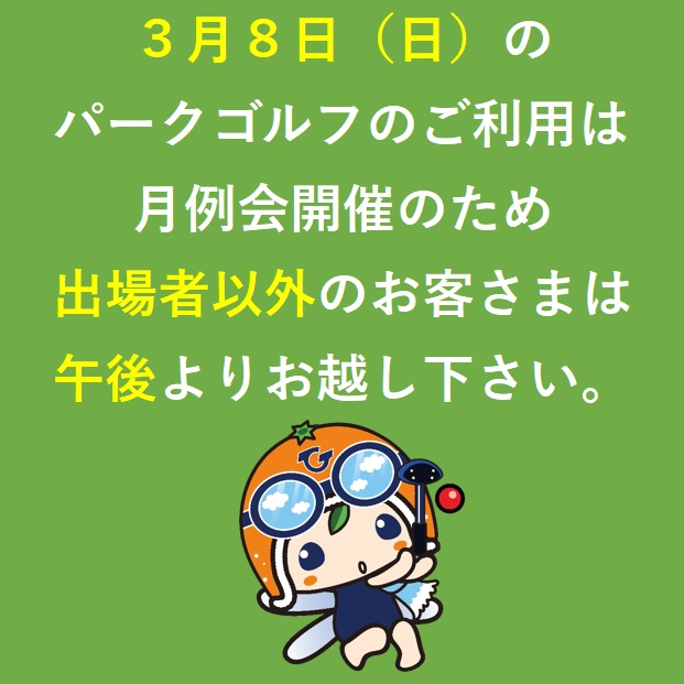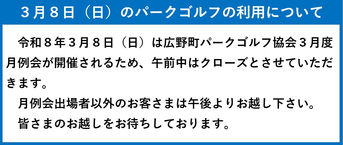 )の午前中は出場者以外のお客さまはパークゴルフをご利用できませんのでご注意ください。