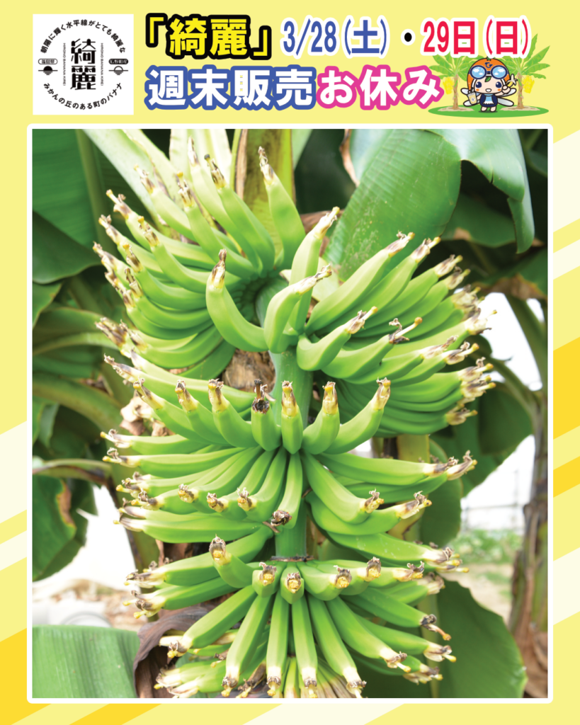 令和8年3月21日(土)・22日(日)のバナナ「綺麗」の販売はお休みいたします。