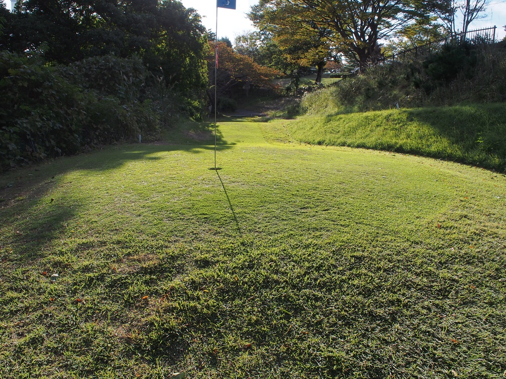 直線的なショートホールです。途中でわずかにカーブしています。