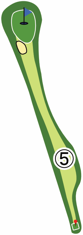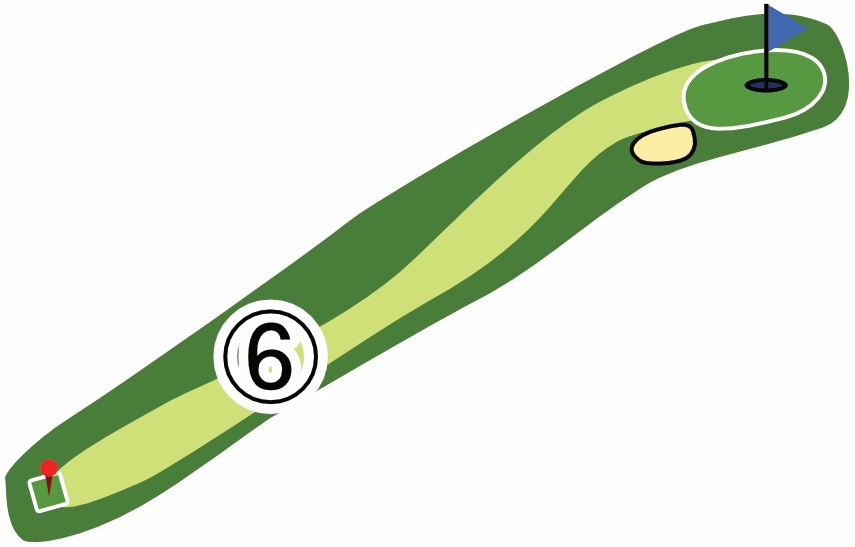 直線的なミドルホールで、砲台グリーンです。樹木が障害となっていて、グリーンが狙いづらくなっています。