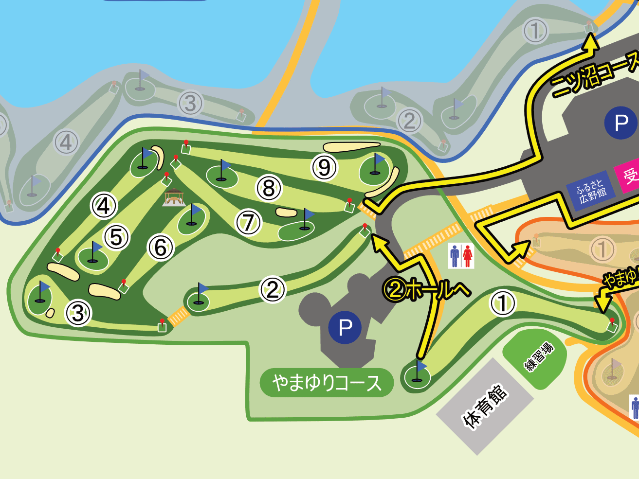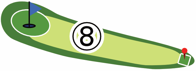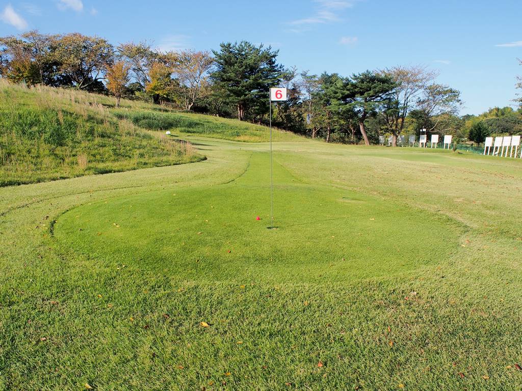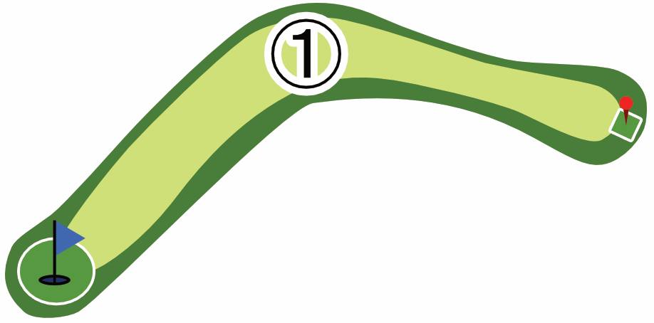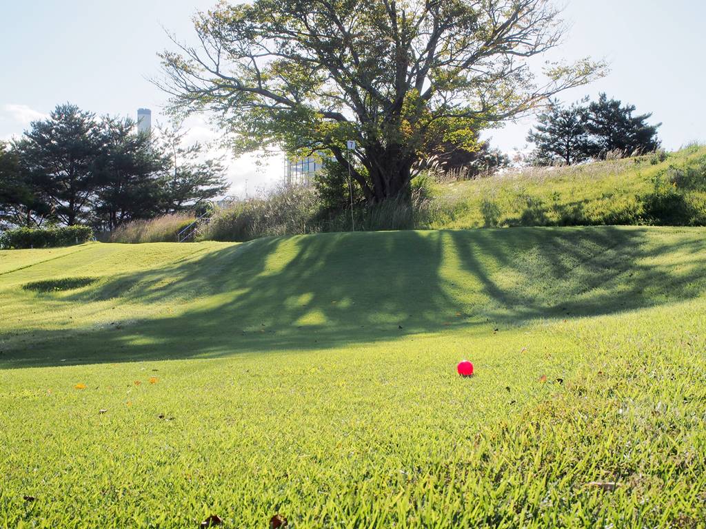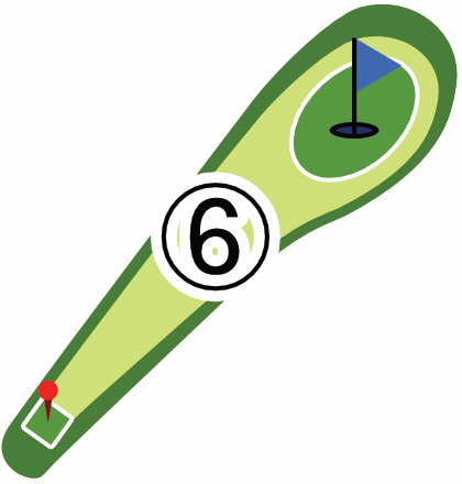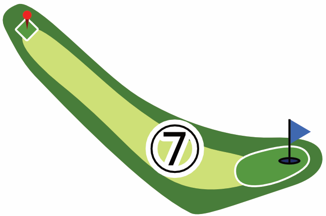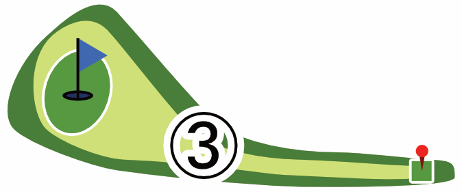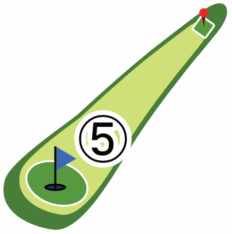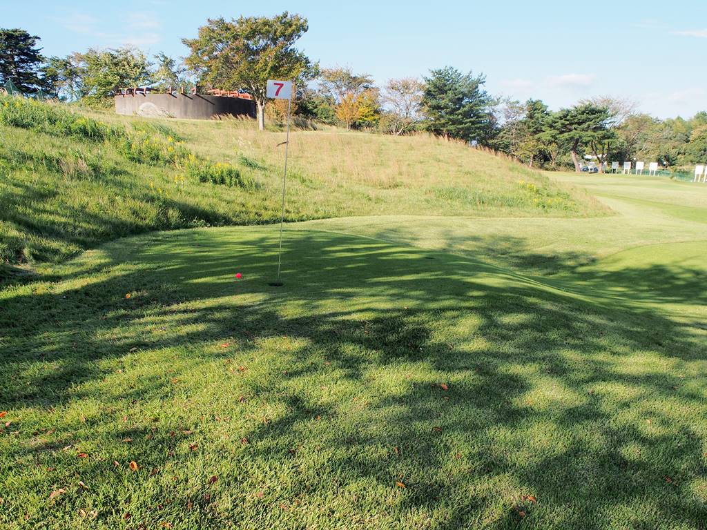 起伏のあるグリーンが多くあります。傾斜で転がってしまい、カップから遠ざかることもあります。まずはボールを止めやすいところを狙い、次の1打で着実にカップインさせるのも攻略法の1つです。カップ近くで何打も打ってしまわないようお気を付けください。